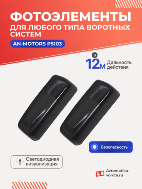 Фотоэлементы P5103 — это проводные устройства безопасности, которые мгновенно останавливают ворота при обнаружении препятствия в зоне движения 12 м, защищая людей, животных и технику. Не требуют сложного монтажа и питания от сети