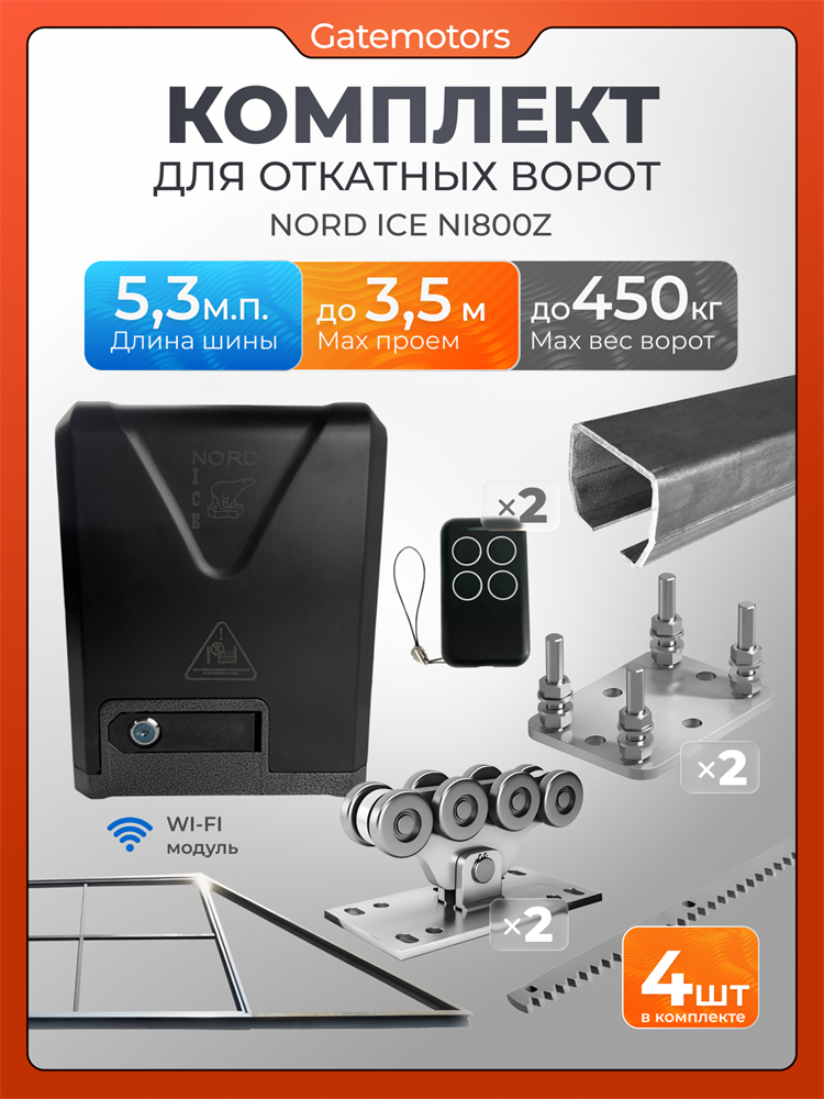 Комплект для откатных ворот Алютех с автоматикой NORD ICE NI800Z, балкой и каркасом 3500х2000