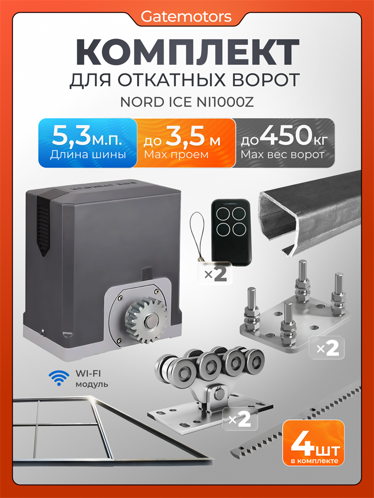 Основные характеристики привода для откатных ворот NI1000Z включают: