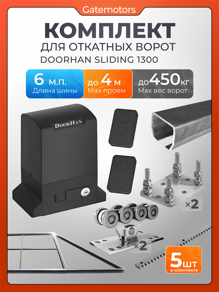 Привод Sliding-1300 состоит из механического редуктора в масляной ванне и электродвигателя со встроенным блоком управления. Редуктор и двигатель выполнены в едином корпусе. Вращательное движение выходной звездочки преобразуется в поступательное движение ворот с помощью зубчатой рейки, закрепленной на воротах.