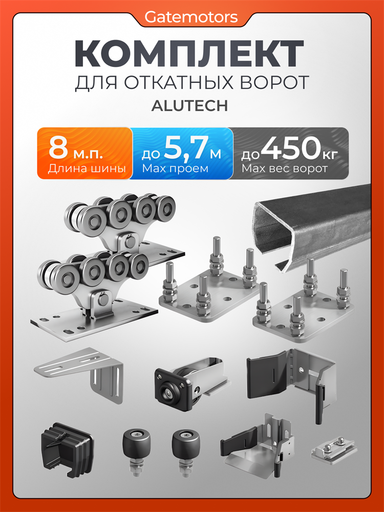 Комплект для откатных ворот Алютех с балкой и подставками