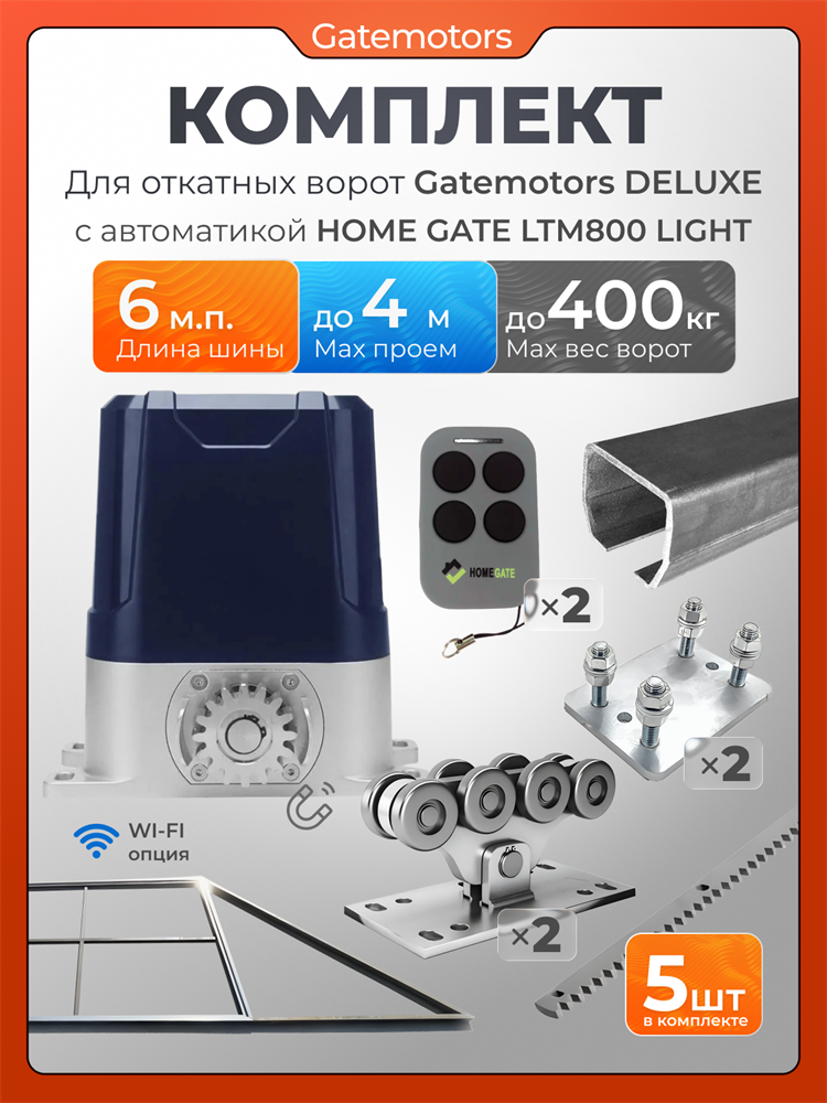 Комплект для откатных ворот Gatemotors с автоматикой LTM800L, балкой и каркасом 4000х2000