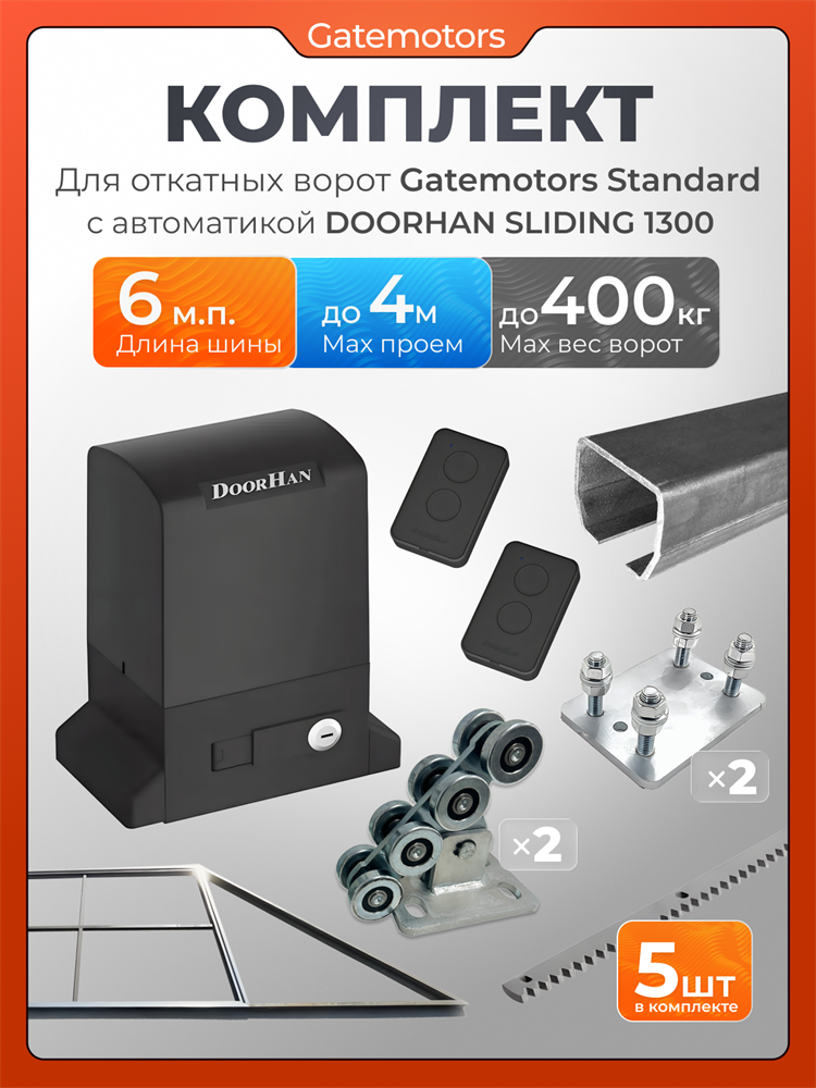 Комплект для откатных ворот Gatemotors с автоматикой Doorhan SL1300, балкой и каркасом 4000х2000
