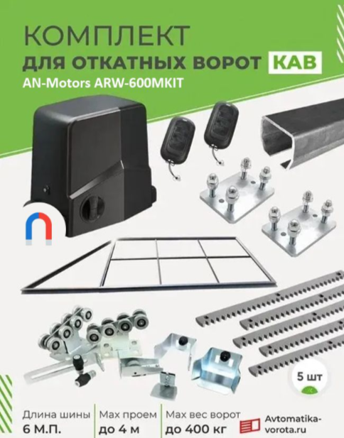 ARW600mkit Привод для откатных ворот AN-Motors ARW-600 MKIT предоставляет высокое качество и надежность. Этот комплект, созданный брендом Alutech, идеально подходит для автоматизации откатных ворот в частных домах и промышленных объектах. Устройство предназначено для легкой и быстрой установки, что позволяет вам сэкономить время и силы при монтаже. AN-Motors ARW-600 MKIT оснащен мощным мотором, который обеспечивает бесперебойную работу ворот, независимо от погодных условий. Это делает привод идеальным для использования в любых климатических условиях. В электродвигателях AN-Motors ARW используется медная обмотка, а не алюминиевая. Такое решение исключает риски переламывания проводки под изоляцией при работе автоматики и защищает мотор от перегрева, повышая производительность и продлевая срок службы привода. Между мотором и шестерней в приводах AN-Motors ARW стоит цельный червячный вал. Цельная конструкция вала дольше сохраняет работоспособность при вибрациях и ударных нагрузках. Надежный вал продлевает срок службы автоматики. Основные характеристики привода для откатных ворот AN-Motors ARW-600 MKIT включают: