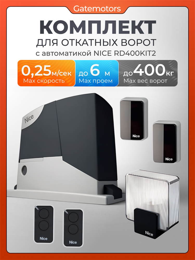 Хотите превратить свои ворота в источник комфорта и безопасности? Тогда автоматика для откатных ворот NICE RD400KIT2 - это именно то, что вам нужно!