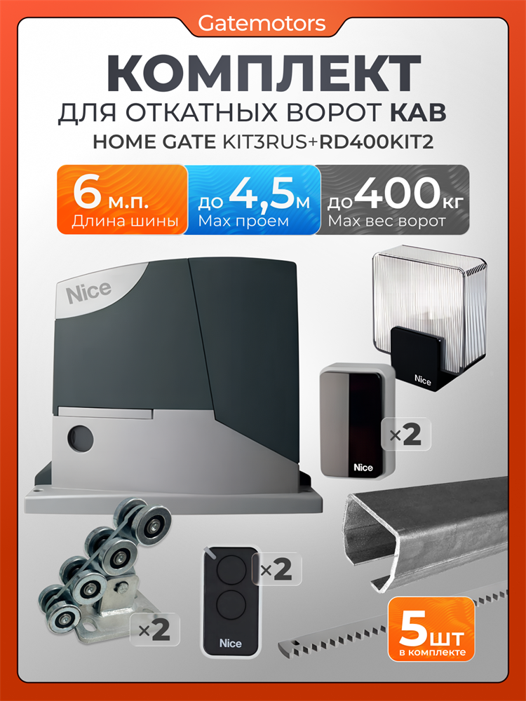Комплект для откатных ворот с балкой, автоматикой NICE RD400KIT2 и зубчатыми рейками