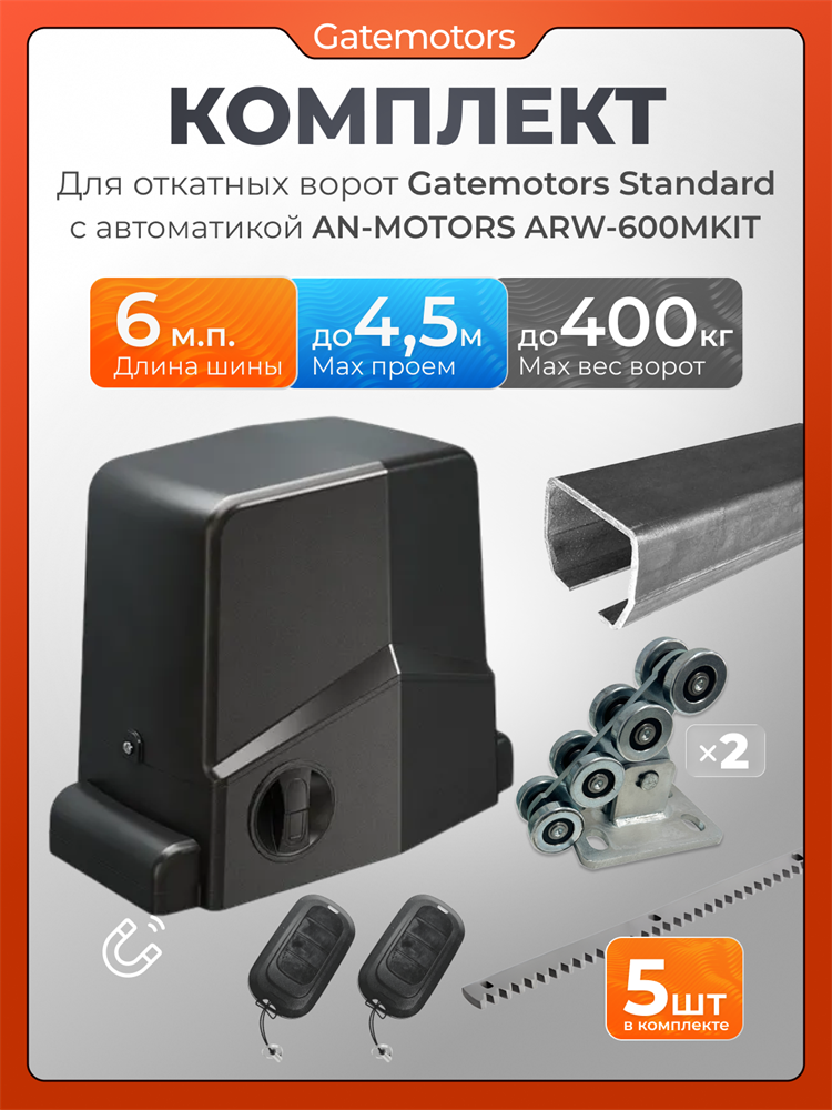 ARW600mkit Привод для откатных ворот AN-Motors ARW-600 MKIT предоставляет высокое качество и надежность. Этот комплект, созданный брендом Alutech, идеально подходит для автоматизации откатных ворот в частных домах и промышленных объектах. Устройство предназначено для легкой и быстрой установки, что позволяет вам сэкономить время и силы при монтаже. AN-Motors ARW-600 MKIT оснащен мощным мотором, который обеспечивает бесперебойную работу ворот, независимо от погодных условий. Это делает привод идеальным для использования в любых климатических условиях. В электродвигателях AN-Motors ARW используется медная обмотка, а не алюминиевая. Такое решение исключает риски переламывания проводки под изоляцией при работе автоматики и защищает мотор от перегрева, повышая производительность и продлевая срок службы привода. Между мотором и шестерней в приводах AN-Motors ARW стоит цельный червячный вал. Цельная конструкция вала дольше сохраняет работоспособность при вибрациях и ударных нагрузках. Надежный вал продлевает срок службы автоматики. Основные характеристики привода для откатных ворот AN-Motors ARW-600 MKIT включают: