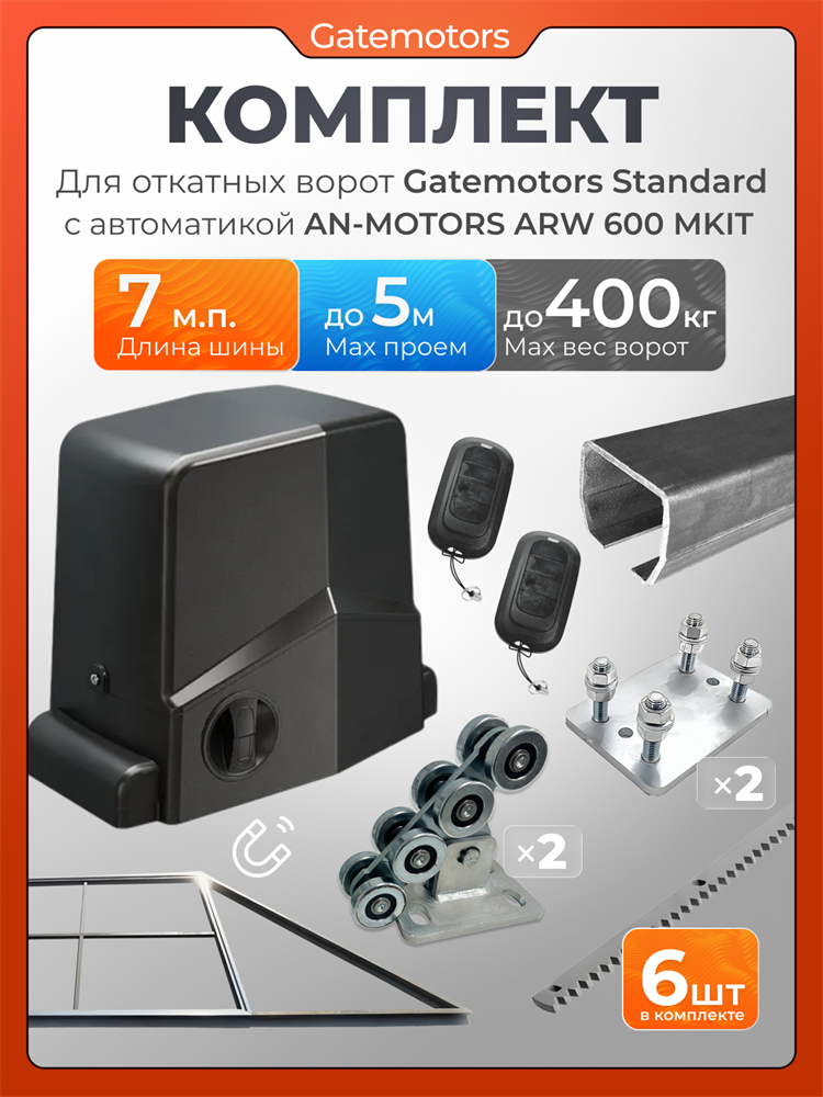 ARW600mkit Привод для откатных ворот AN-Motors ARW-600 MKIT предоставляет высокое качество и надежность. Этот комплект, созданный брендом Alutech, идеально подходит для автоматизации откатных ворот в частных домах и промышленных объектах. Устройство предназначено для легкой и быстрой установки, что позволяет вам сэкономить время и силы при монтаже. AN-Motors ARW-600 MKIT оснащен мощным мотором, который обеспечивает бесперебойную работу ворот, независимо от погодных условий. Это делает привод идеальным для использования в любых климатических условиях. В электродвигателях AN-Motors ARW используется медная обмотка, а не алюминиевая. Такое решение исключает риски переламывания проводки под изоляцией при работе автоматики и защищает мотор от перегрева, повышая производительность и продлевая срок службы привода. Между мотором и шестерней в приводах AN-Motors ARW стоит цельный червячный вал. Цельная конструкция вала дольше сохраняет работоспособность при вибрациях и ударных нагрузках. Надежный вал продлевает срок службы автоматики. Основные характеристики привода для откатных ворот AN-Motors ARW-600 MKIT включают:
