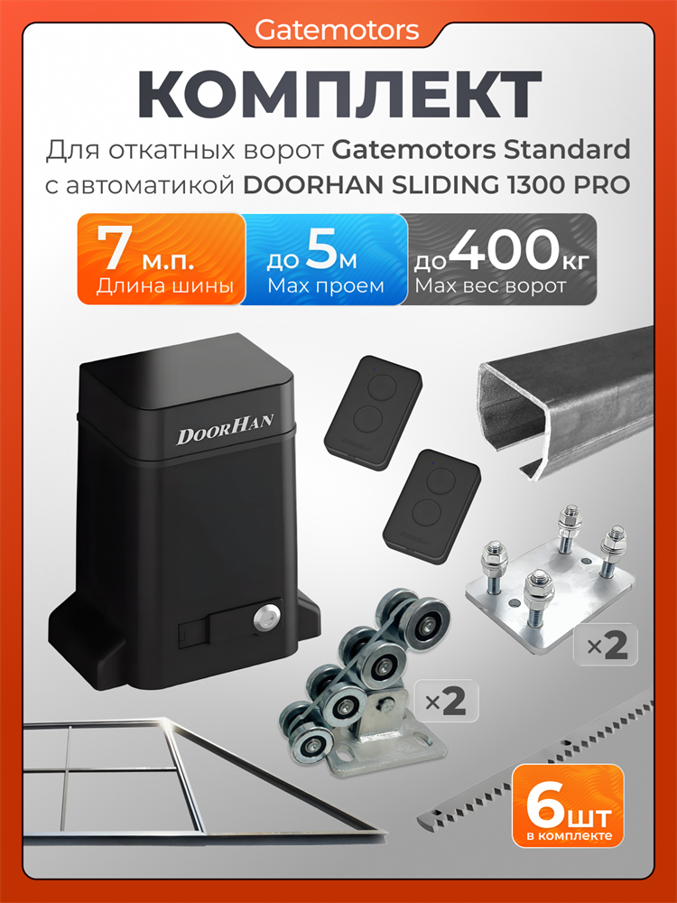 Комплект Gatemotors для откатных ворот с автоматикой Doorhan SL1300 PRO, балкой и каркасом 5000х2000