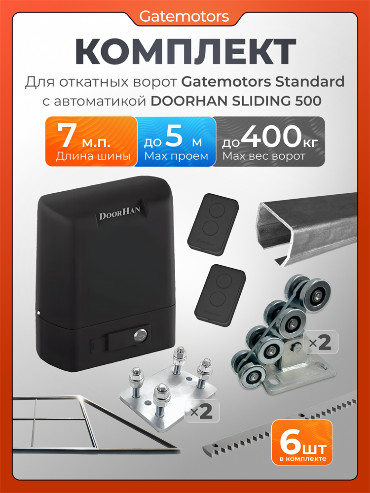 SLIDING 500 Сбалансированное решение для автоматизации — привод для откатных ворот SLIDING 500. Этот комплект автоматики оптимален для ворот средней тяжести в частных домовладениях. Оборудование для автоматизации ворот обеспечивает плавный ход створок с минимальным уровнем шума. Привод для откатных ворот SLIDING 500 отличается простотой установки и настройки, а также экономичным энергопотреблением. Система демонстрирует стабильную работу в различных климатических условиях и не требует специального обслуживания. Практичный выбор для регулярного использования на дачах и в частных домах. Основные характеристики привода для откатных ворот SLIDING 500 включают: