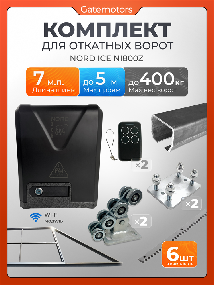 Комплект КАВ для откатных ворот с автоматикой NORD ICE NI800Z, балкой и каркасом 5000х2000