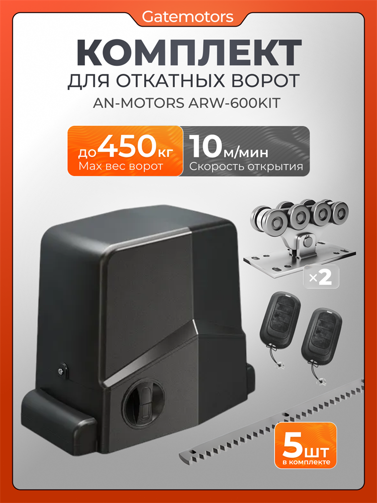 ARW600kit Привод для откатных ворот AN-Motors ARW-600 KIT предоставляет высокое качество и надежность. Этот комплект, созданный брендом Alutech, идеально подходит для автоматизации откатных ворот в частных домах и промышленных объектах. Устройство предназначено для легкой и быстрой установки, что позволяет вам сэкономить время и силы при монтаже. AN-Motors ARW-600 KIT оснащен мощным мотором, который обеспечивает бесперебойную работу ворот, независимо от погодных условий. Это делает привод идеальным для использования в любых климатических условиях. В электродвигателях AN-Motors ARW используется медная обмотка, а не алюминиевая. Такое решение исключает риски переламывания проводки под изоляцией при работе автоматики и защищает мотор от перегрева, повышая производительность и продлевая срок службы привода. Между мотором и шестерней в приводах AN-Motors ARW стоит цельный червячный вал. Цельная конструкция вала дольше сохраняет работоспособность при вибрациях и ударных нагрузках. Надежный вал продлевает срок службы автоматики. Основные характеристики привода для откатных ворот AN-Motors ARW-600 KIT включают: