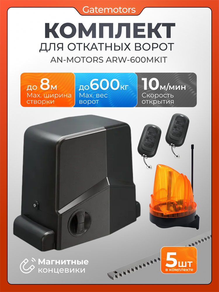 Привод для откатных ворот AN-Motors ARW-600 MKIT предоставляет высокое качество и надежность. Этот комплект, созданный брендом Alutech, идеально подходит для автоматизации откатных ворот в частных домах и промышленных объектах. Устройство предназначено для легкой и быстрой установки, что позволяет вам сэкономить время и силы при монтаже. AN-Motors ARW-600 MKIT оснащен мощным мотором, который обеспечивает бесперебойную работу ворот, независимо от погодных условий. Это делает привод идеальным для использования в любых климатических условиях. В электродвигателях AN-Motors ARW используется медная обмотка, а не алюминиевая. Такое решение исключает риски переламывания проводки под изоляцией при работе автоматики и защищает мотор от перегрева, повышая производительность и продлевая срок службы привода. Между мотором и шестерней в приводах AN-Motors ARW стоит цельный червячный вал. Цельная конструкция вала дольше сохраняет работоспособность при вибрациях и ударных нагрузках. Надежный вал продлевает срок службы автоматики. Основные характеристики привода для откатных ворот AN-Motors ARW-600 MKIT включают: