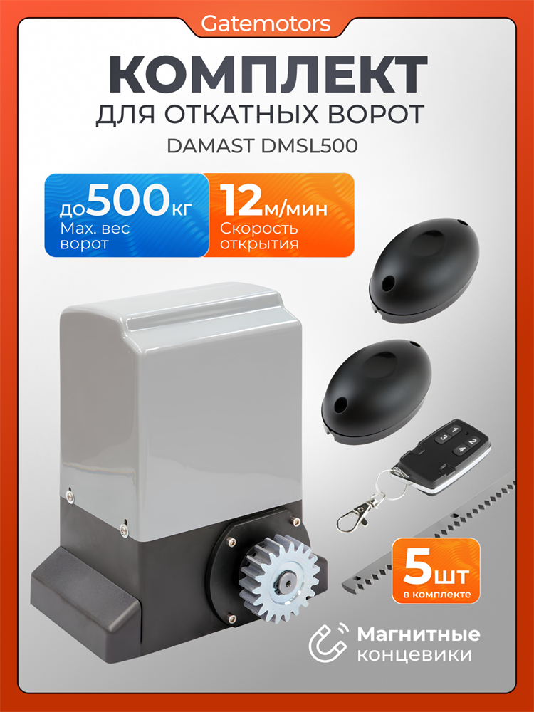 Привод для откатных ворот Damast DMSL500 с зубчатыми рейками и фотоэлементами