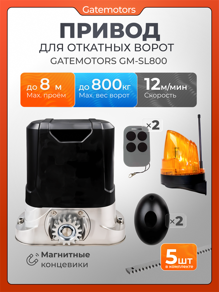 Привод для откатных ворот Gatemotors GM-SL800 с сигнальной лампой и фотоэлементами