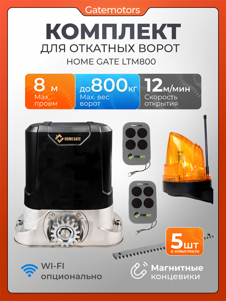 Привод для откатных ворот Home Gate LTM800 с зубчатыми рейками и сигнальной лампой