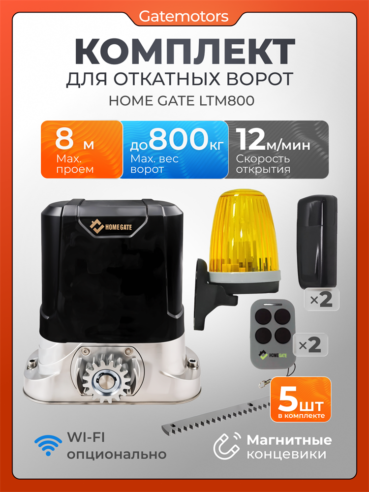 Привод для откатных ворот Home Gate LTM800 с зубчатыми рейками, сигнальной лампой и фотоэлементами