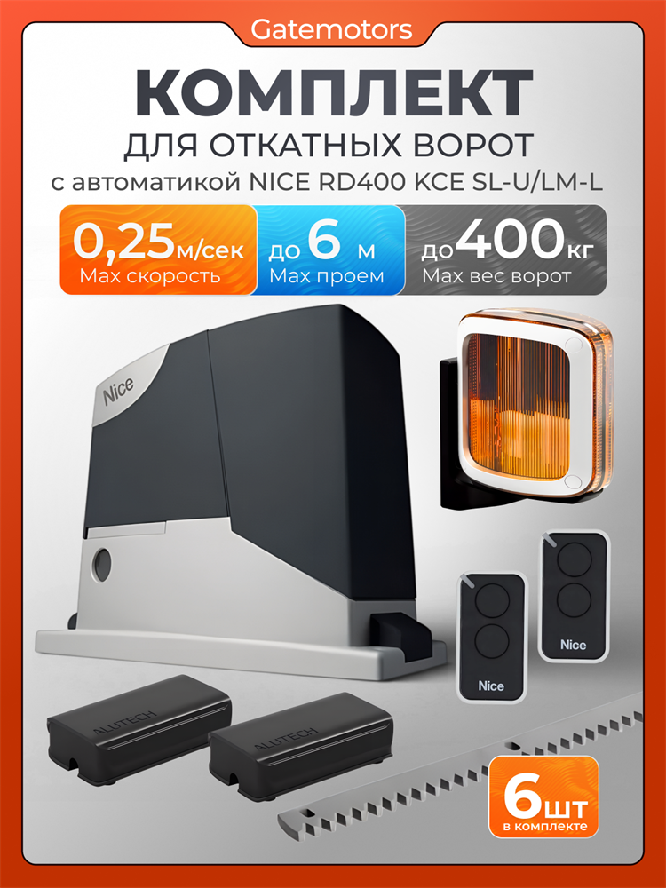 Привод для откатных ворот Nice RD400KCE-SL-U/LM-L с комплектом