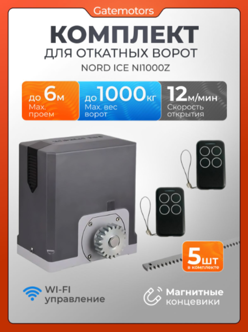 Привод для откатных ворот NORD ICE NI1000Z с зубчатыми рейками