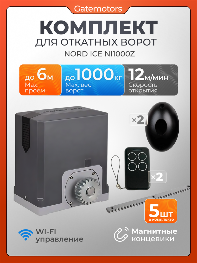 Привод для откатных ворот NORD ICE NI1000Z с зубчатыми рейками и фотоэлементами