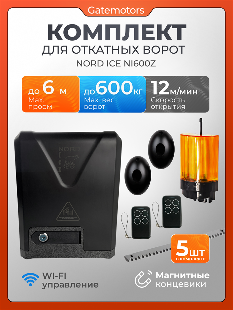 Привод для откатных ворот NORD ICE NI600Z с сигнальной лампой и фотоэлементами