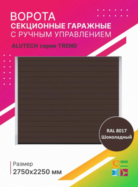 Секционные ворота с ручным управлением Алютех 2750х2250мм