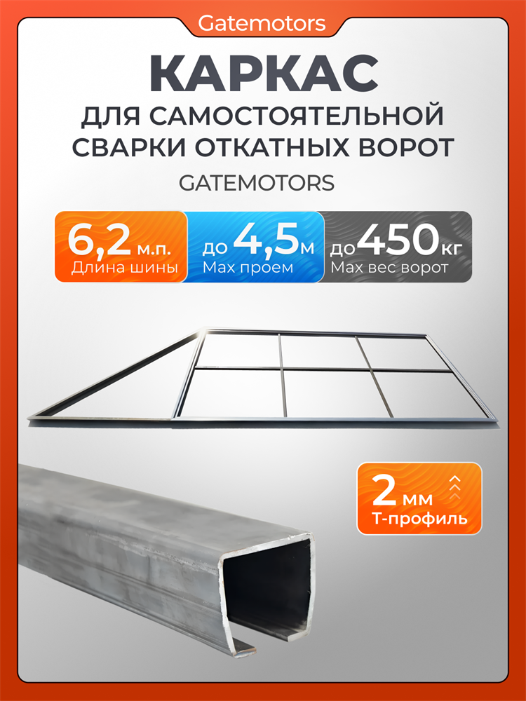 Каркас для откатных ворот на проем 4500х2000 мм с шиной Gatemotors - 6.2 м