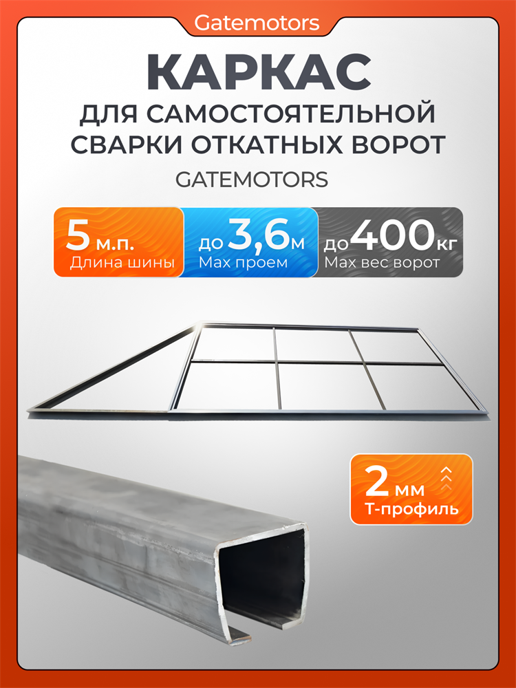 Каркас откатных ворот на проем 3600х2000 мм с шиной КАВ - 5 м