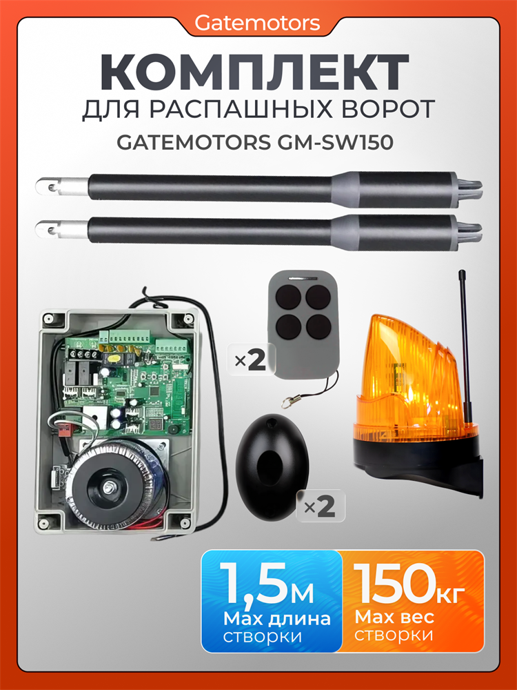 Комплект для распашных ворот Gatemotors GM-SW150 с сигнальной лампой, фотоэлементами и WI-FI модулем