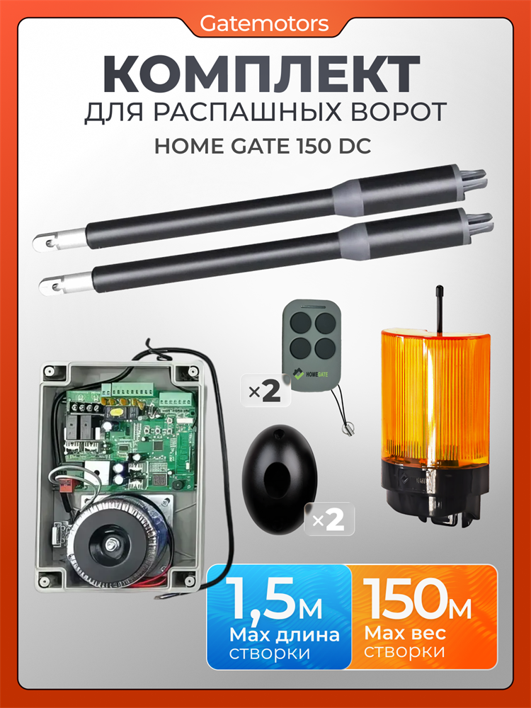 Комплект для распашных ворот Home Gate 150DC с сигнальной лампой, фотоэлементами и WI-FI модулем