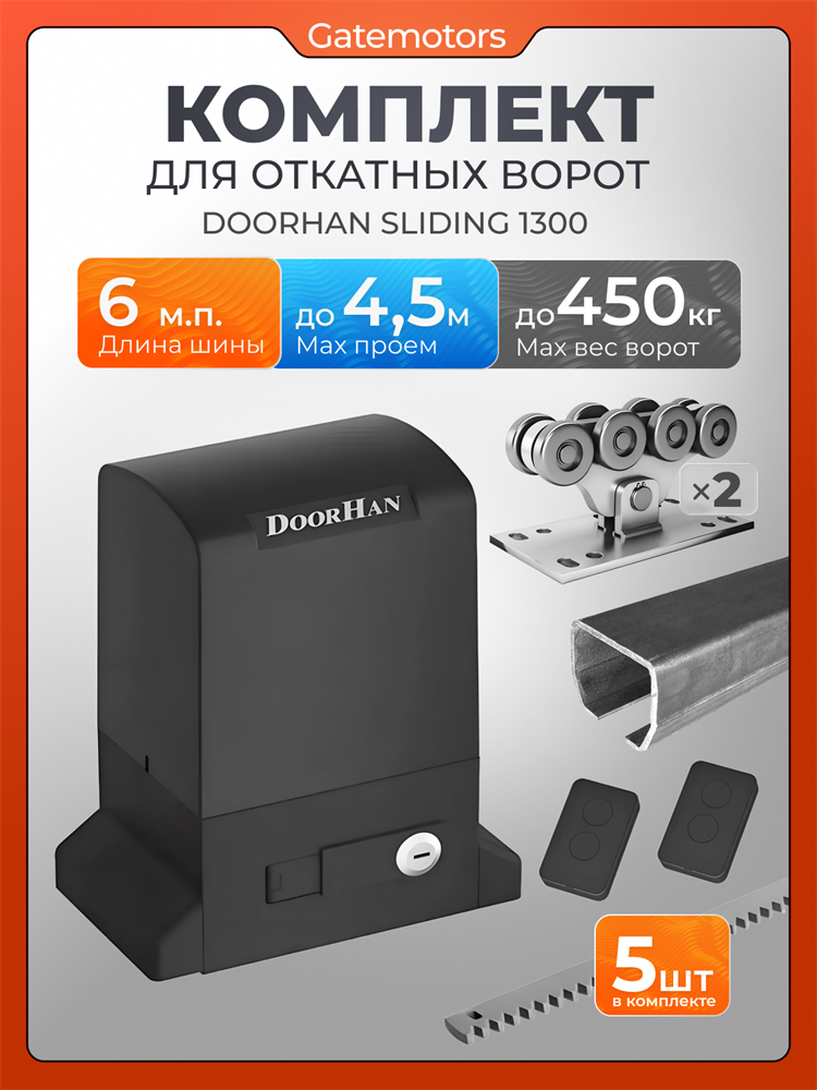 Комплект DoorHan с шиной 6 м + SLIDING 1300 + зубчатая рейка 5шт. (для откатных ворот на проем до 4,5 м, вес до 450 кг) БЕЗ ПОДСТАВОК