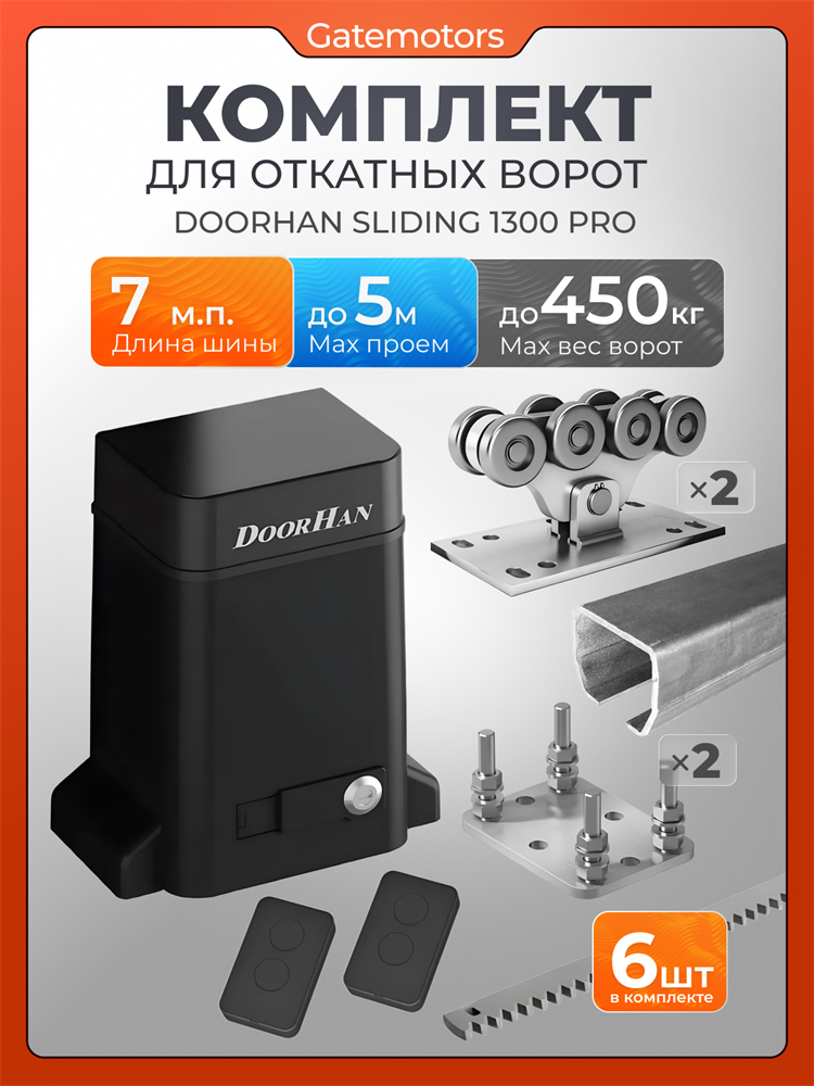 Комплект DoorHan с шиной 7 м +ПОДСТАВКИ 2шт+ SLIDING 1300 PRO + 6 зубчатых реек (для для откатных ворот на проема до 5 м, вес до 450 кг)