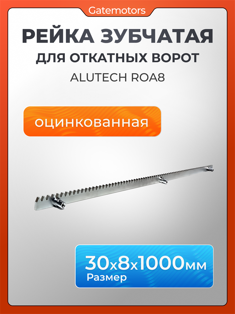 AN-Motors ROA8 – оцинкованная металлическая зубчатая рейка для приводов откатных ворот, поставляется с винтами и шайбами.